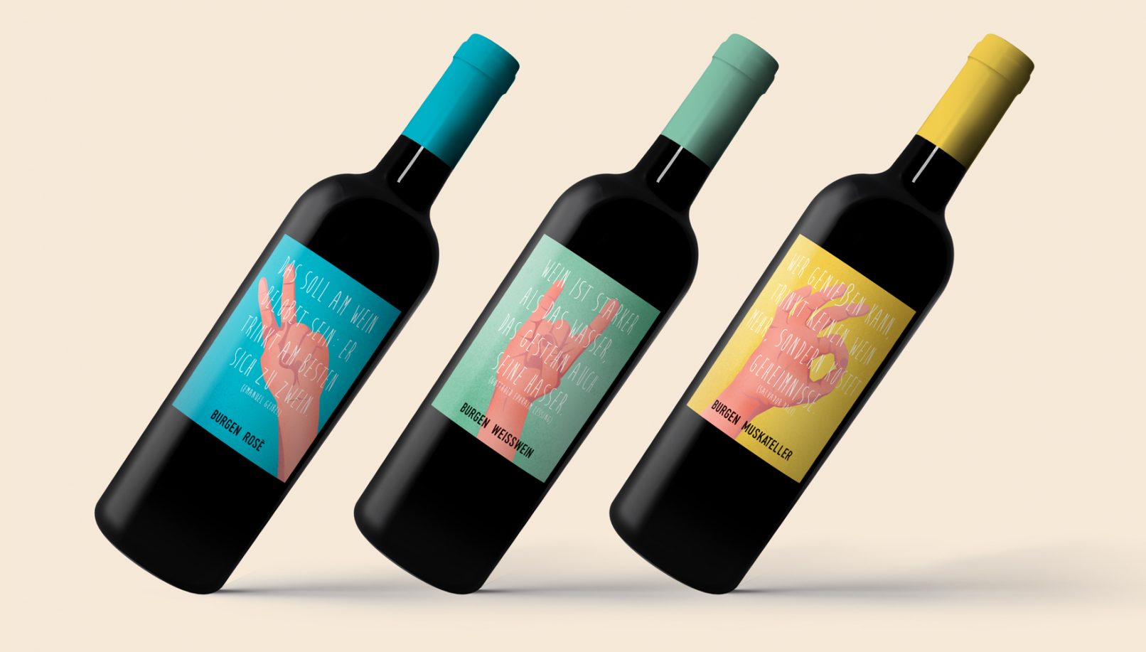 Konzeption und Gestaltung einer Weinetiketten-Serie für Burgen Drinks.